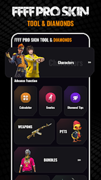 FFFF Pro Skin Tool & Diamonds — это утилита, созданная фанатами, предназначенная для игроков популярной игры FFF. Это приложение служит информативным руководством, предлагая пользователям богатую коллекцию скинов, эмоций и наборов, наряду с важными советами и стратегиями игры. Пользователи могут перемещаться по хорошо структурированному интерфейсу, который предоставляет ценные сведения о оружии, картах, питомцах и транспортных средствах, улучшая их общий игровой опыт.